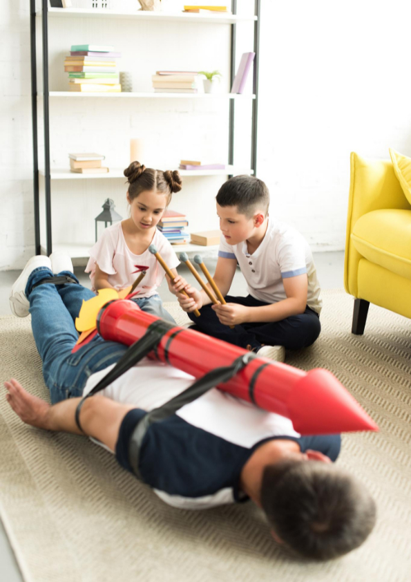 This activity brings a wealth of Social Skill Development. These being “Teamwork, Listening Skills, Eye Contact, Solo Speaking, Imagination and Confidence’. To add “Leadership Qualities” you can also appoint a “Director”. This works with slightly older children.